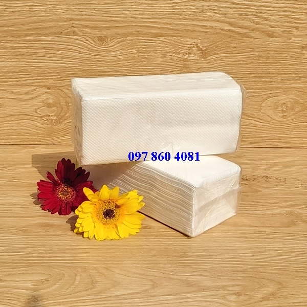 Gói giấy có hình chữ nhật, khi rút từng tờ mở ra có hình vuông.